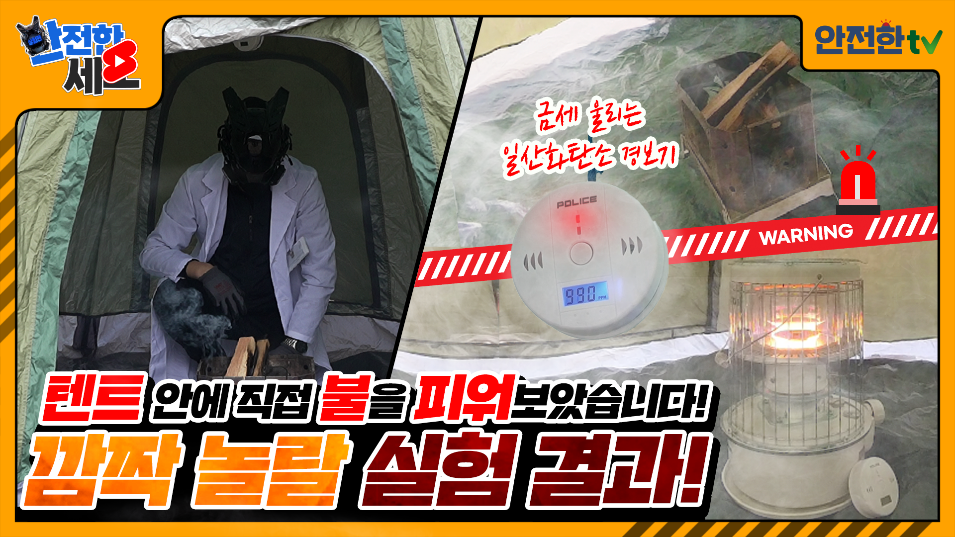 [안전한세로] 캠핑 시 일산화탄소의 위험성? 직접 텐트 안에서 불을 피워봤습니다!ㅣ안전한TV 실험 영상