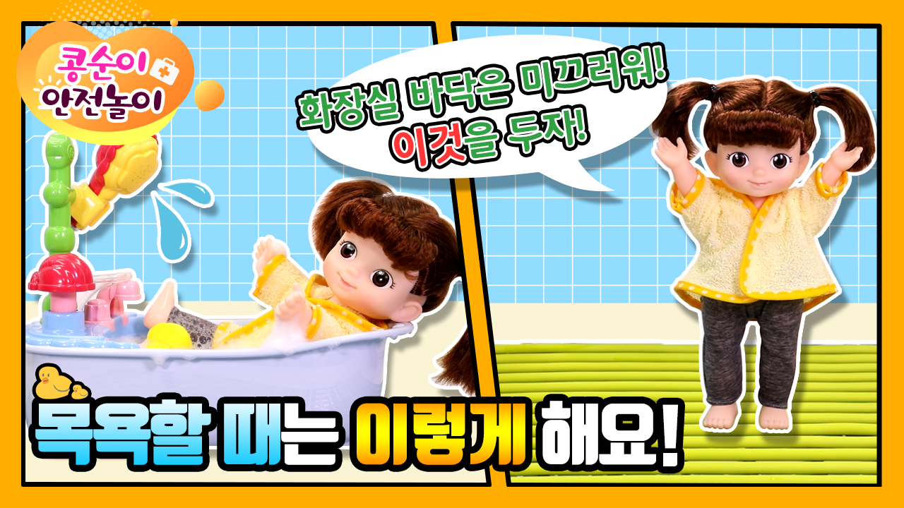 [콩순이와 함께하는 안전 놀이] 화장실에서 샤워할 때 조심해요!