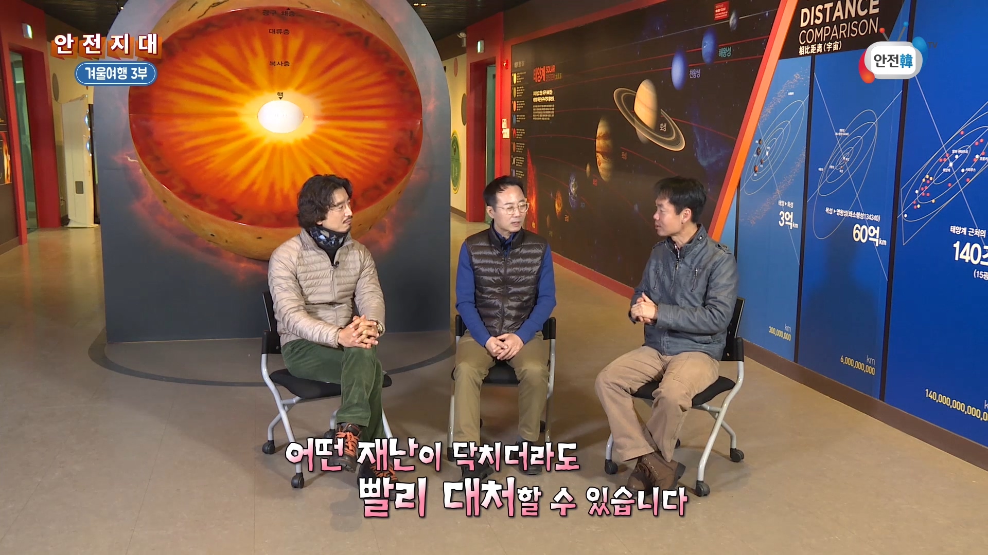 세 출연자가 여행을 다니며 안전과 관련된 이야기나 상식을 들려드립니다.